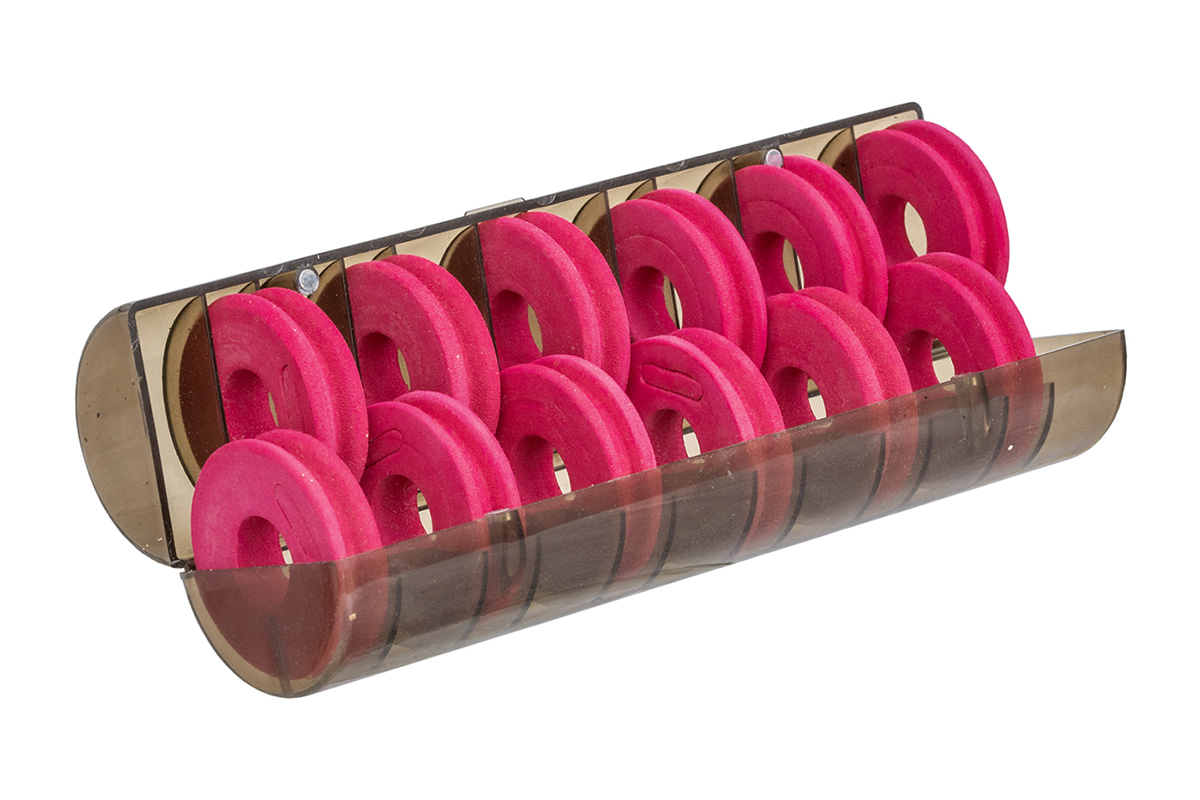 A strapabíró, átlátszó anyagú, hosszúkás henger alakú műanyag tartóba 12 darab korong formájú EVA spulni kapott helyet. Gyakran van szükség kimondottan hosszú horogelőkékre, melyek a hagyományos előketartóba csak a zsinór „megtörésével” helyezhetőek el. Ezzel ellentétben a spulnis megoldás esetén a hosszú előkéket szépen feltekerve – megtörés nélkül – tárolhatjuk. Az első előke horgát egyszerűen beleszúrjuk a szivacsos spulni oldalába, majd a következő horgot az előző előke hurkába akasztjuk, utolsó előke fülének rögzítése egy gömbfejű gombostű segítségével könnyen megoldható. Az előkék mellett akár előketoldásokat, de komplett szerelékeket is tárolhatunk a spulnikon.