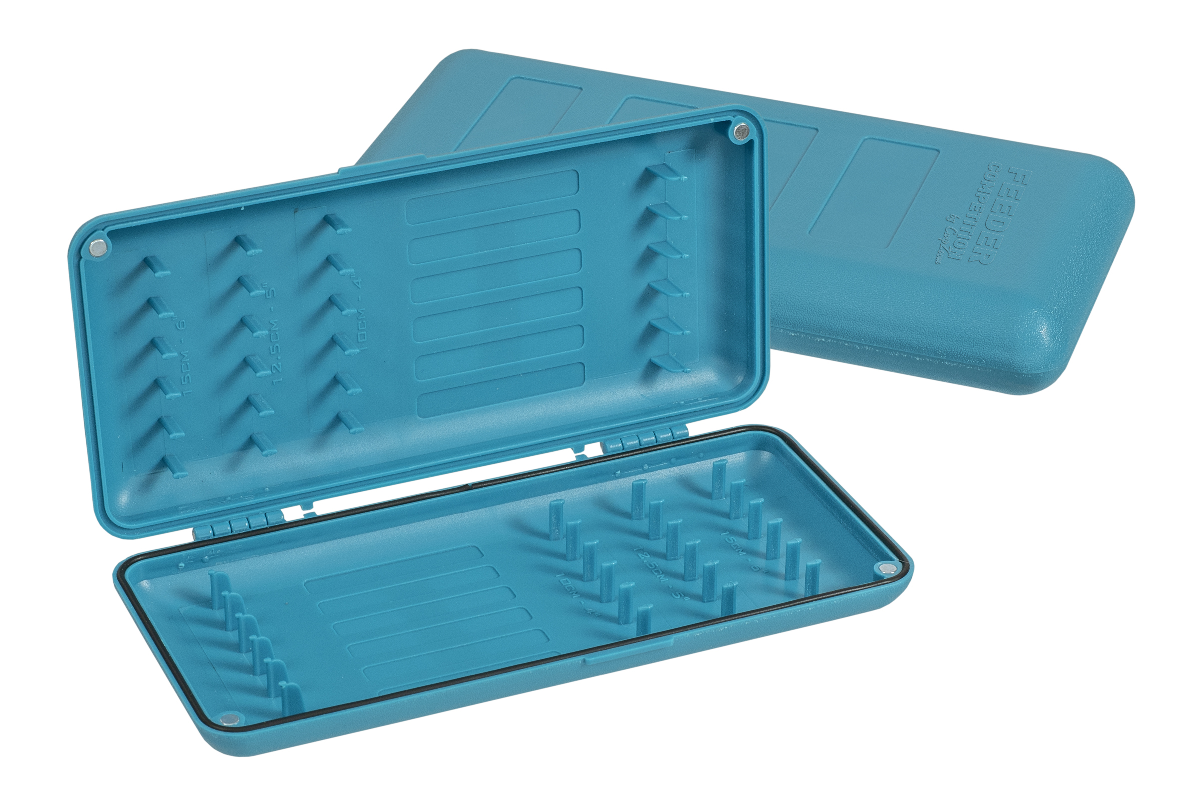 Különösen versenyeken és a rövid vagy pörgős horgászatok alkalmával van nagy jelentősége annak, hogy minél kevesebb időt fordítsunk szerelésre. Ebben segít ez a praktikus, lepkeszerűen szétnyitható, erős mágneses zárral ellátott, műanyag előketartó doboz. Az előre kialakított helyeken 10, 12.5, és 15 centis előkék is kényelmesen elhelyezhetőek. Természetesen, ha ennél is hosszabbra van szükség, az is megoldható, ha a tartó tüskék köré tekerjük az előkénket. Elsősorban feeder és békéshal horgászoknak ajánljuk.