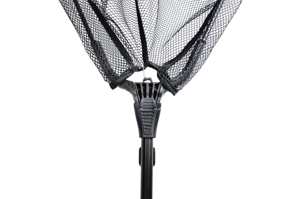 Általános horgászatokra kialakított matt fekete színű összecsukható merítőszák, melynek nyele teleszkópos gyorszárral állítható, végén fekete gumis markolat található a biztos merítés érdekében. Merítőfeje közepes méretű, nyakrésze erősített műanyag.