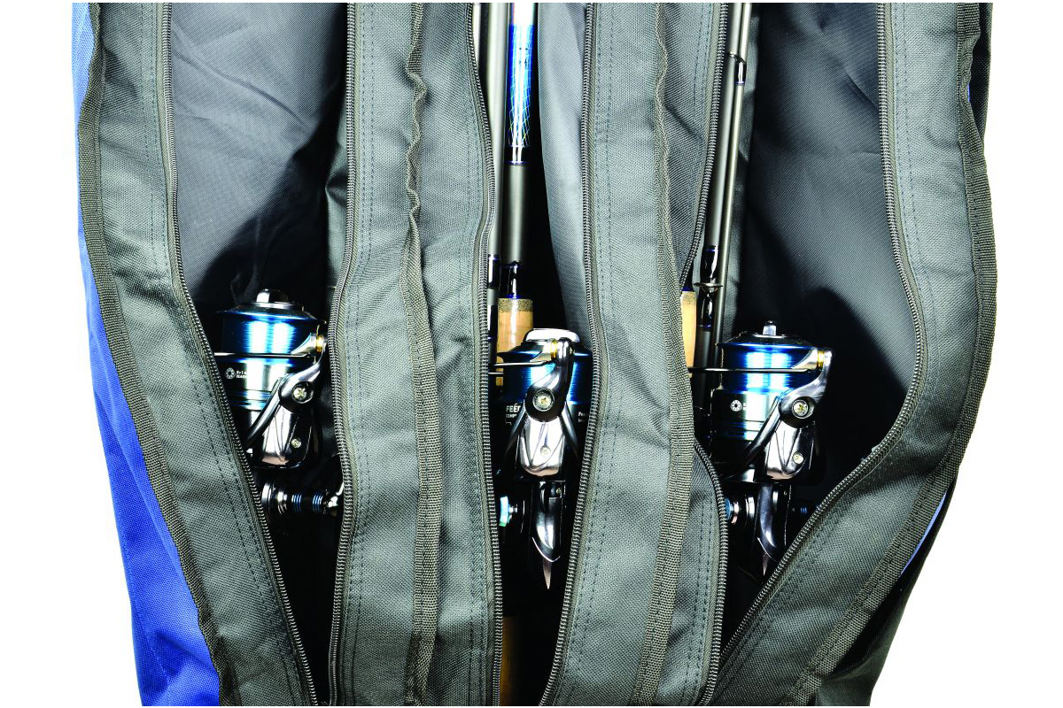 Három, orsóval felszerelt bot számára nyújt védelmet ez a stílusos botzsák. Külső zsebbel a merítőhálónak vagy leszúrónak. Párnázott vállpánttal rendelkezik.