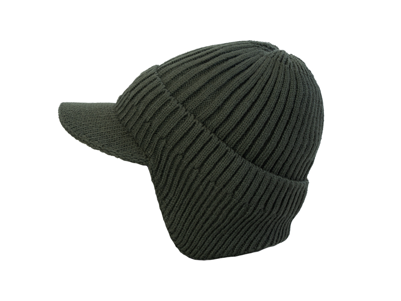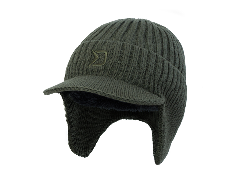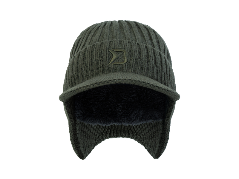 A külső sötétzöld anyag rugalmas és alkalmazkodó, így a kalap univerzális mérettel rendelkezik. Az eleje erős karimával van ellátva, amely védi a szemet és az arcot a napfénytől, valamint az esőtől és a hótól.