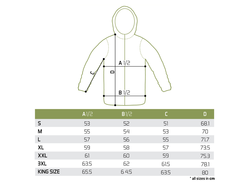 A megfelelő méret kiválasztásához kérjük, ellenőrizze a mellékelt mérettáblázatot.