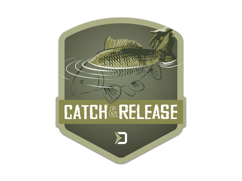 Minden modern pontyhorgász tudja, hogy a kifogott halak visszaengedése a természetes környezetébe a helyes út. Ezeknek a horgászoknak akik a “Catch and Release“ hívei, készült ez a matrica ahol a horgász engedi vissza a kifogott halat.