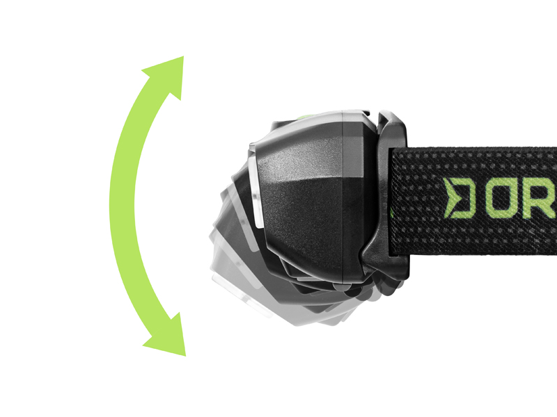 A maximális rugalmasság érdekében az ORBIX fejlámpa dönthető, így a kívánt szögbe állítható. A rugalmas, állítható fejpánt kényelmes viseletet biztosít.