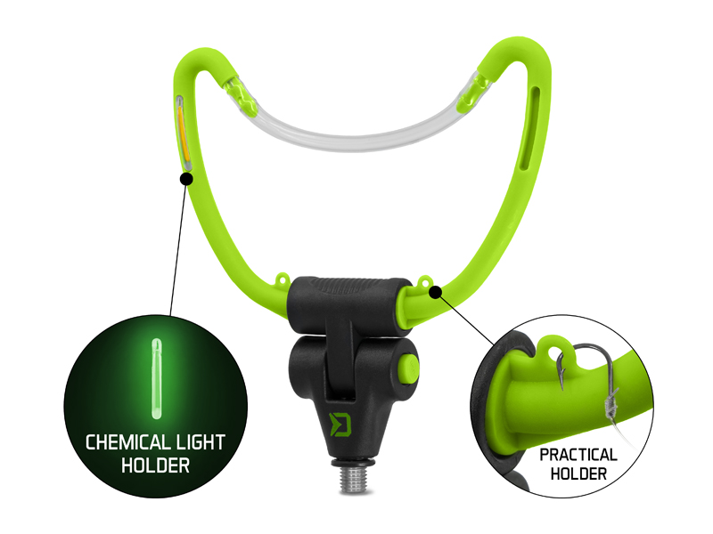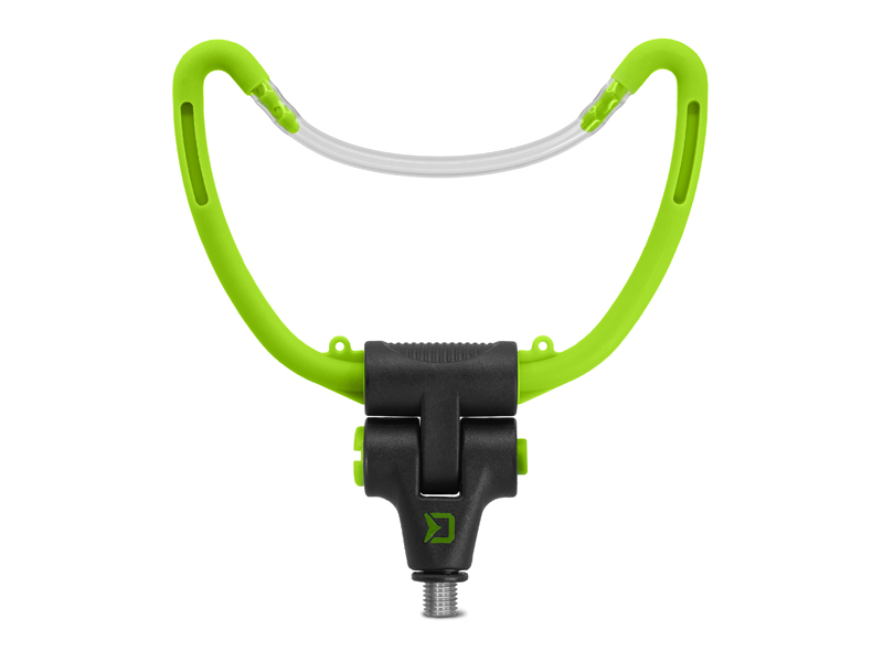 A Delphin REAXE „U” alakú tartó egy sokoldalú, megbízható és biztonságos bottartó feeder horgászoknak. Az alján található szerkezet segít a kívánt dőlésszög beállításában. 14,5 cm széles. Az etetőkosár megtöltésekor a horog rögzítésére szolgáló hurkok, a tartó hasznos kiegészítői. Ezenkívül 4 nyílással rendelkezik a világítópatronok számára, a kényelmes éjszakai horgászathoz. Univerzális menettel rendelkezik, amely kompatibilis a legtöbb leszúróval és bottartóval a piacon. A zöld és fekete szín tökéletesen passzol a REAXE feeder sorozathoz.