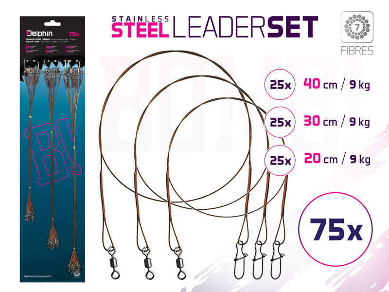 Acélhuzal szett BOMB! forgóval és kapoccsal / 7 száll | 75x/35cm/9,12,15kg